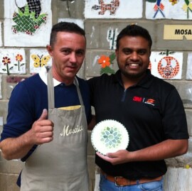 The organization Duminda and his team were paired with, Cornelia, is a nonprofit involved in the psychological rehabilitation of people with mental disorders. Cornelia staffs its 13 workshops with around 300 patients who grow vegetables and create mosaics and other pieces of art using materials such as wood, steel and ceramics. When their items are sold, the patients receive wages – enabling them to make a living. (One artisan of the Cornelia Association, Edson Silva, is pictured with Duminda above.)