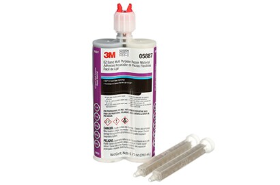 Choose a flexible filler such as 3M™ EZ Sand Multi-Purpose Repair Material. Using a manual applicator gun, mix and apply the flexible filler with a “tight coat” first to ensure the substrate is fully wetted-out with adhesive. Then build up the area with thin wet-on-wet flexible filler coats. Make sure to keep the flexible filler within the repair area to prevent repair mapping.
