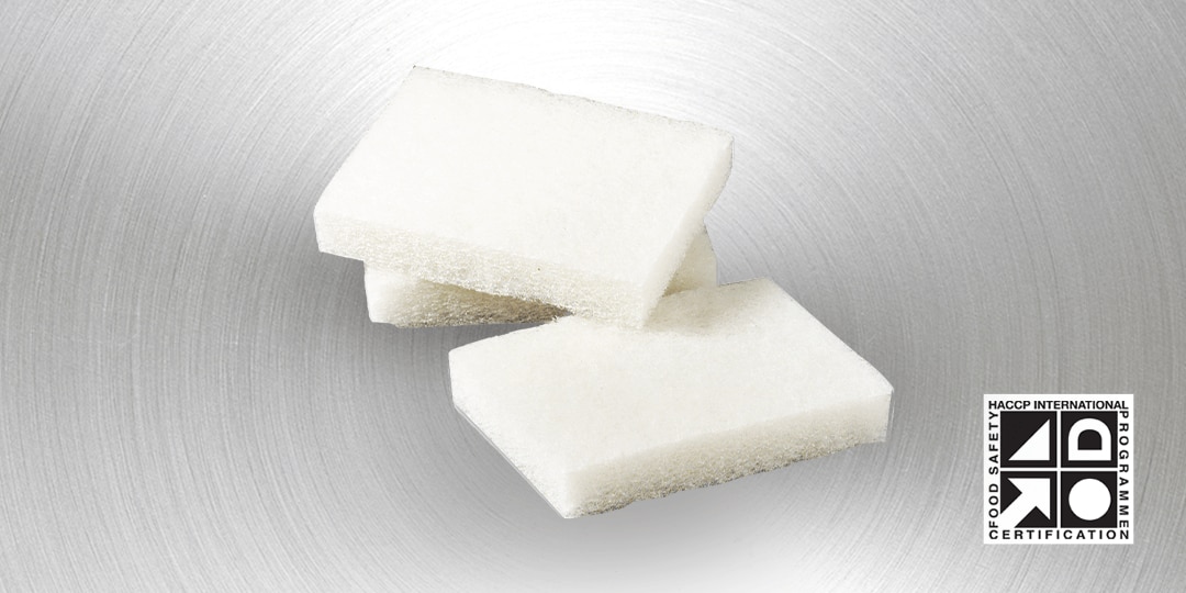 A soft, convenient, thick, hand-sized pad for gentle cleaning of delicate surfaces. It resists degradation from exposure to hot water, detergents and normal cleaning liquids.