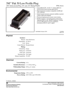 The 3M™ Pak 50 Low Profile Plug, P50L Series is a low-profile boardmount solution for surfacemount (SMT) board stacking applications. Polarized alignment posts help minimize misalignment, allowing for accurate board-to-board installation.